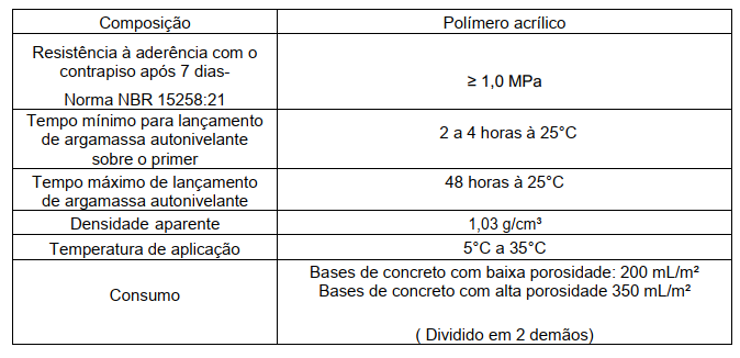É indicado para selar a porosidade da base (concreto ou contrapiso tradicional), evitando o